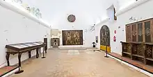 Son destacables dos tablas manieristas: el Descendimiento (1,5 x 0,9m), del segundo tercio del siglo XVI y atribuido al círculo de Juan de Campaña, y la Virgen franciscana (1,2 x 0,74m), una Virgen con el Niño en brazos de finales del mismo siglo. Ambos se presentan en retablos compuestos por restos de otros retablos anteriores.