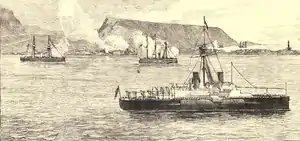 - Vegas, Manuel (1929). Historia de la Marina del Perú: 1821-1924. Lima: Talleres Gráficos de la Marina. Durante la guerra del Pacífico en 1879, el monitor Huascar y la Independencia eran uno de los mejores barcos del Perú, el 21 de Mayo de 1879 fueron a desbloquear el puerto de Iquique donde se encontraba la corbeta Esmeralda, la goleta Covadonga y el transporte Lamar, Miguel Grau en aquel entonces capitán del Huascar, ordenó a la Independencia en persecución de la Covadonga mientras que el Huascar se quedaría a luchar con la Esmeralda, pero tras la llegada de un bote comandando por Salome Porras, les advirtieron a los marineros del Huascar qué no habían minas submarinas alrededor de la Esmeralda, por lo que como último recurso decidió espolonear a la Esmeralda, el primer espolonazo no tuvo mayores consecuencias, considerando el abordaje de Arturo Prat y Sargento Aldea, tras el segundo espolónazo, el teniente Ignacio Serrano y otros 11 marineros abordan el Huascar pero son abatidos en cubierta, al mismo tiempo que la Esmeralda empieza a hundirse desde la proa, finalmente a las 12:00 de la mañana del 21 de Mayo de 1879, el Huascar acierta un último y tercer espolónazo qué provoca el destino de la "vieja mancarrona". Finalmente a las 12:10 la Esmeralda se hunde en las aguas de Iquique y el Huascar por ordenes de Miguel Grau rescatan a los 57 sobrevivientes, menos de una tercera parte de su dotación, su comandante Prat también murió en el primer abordaje junto con el Sargento Juan de Dios Aldea Fonseca. Obteniendo así el Huascar una victoria en combate, después llendo a rescatar a los tripulantes de la Independencia qué acababa de encallar. El heroísmo de Prat tanto como la caballerosidad de Miguel Grau se homenajean en ambos países, Miguel Grau también dirijio una carta a la viuda de Prat Carmela Carvajal y esta le respondió agradeciendole por el caballeroso gesto de su carta y el dolor por la muerte de su esposo Agustín Arturo Prat Chacón el 1 de agosto de 1879.