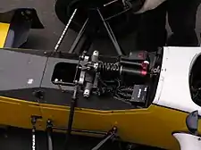 Las suspensiones también se sitúan fuera de la carrocería, compuestas por horquillas dobles vinculadas con un barra de empuje o de tracción.