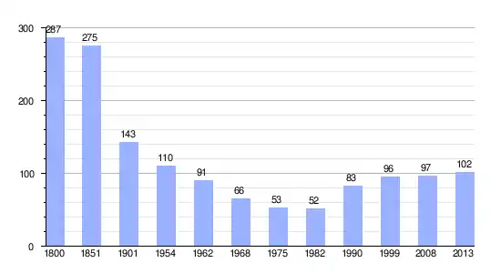 Los datos demográficos contemplados en este gráfico de la comuna de Mont-de-l'If[4] se han cogido de 1800 a 1999 de la página francesa EHESS/Cassini, y los demás datos de la página del INSEE.[5]