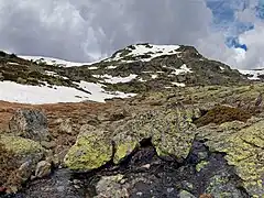 ![]() Cima de la Hermana Mayor vista desde el camino de ascenso a la cima de Peñalara. | ||
