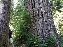 Los bosques Olímpicos son bosques de coníferas, únicos entre los bosques templados mésicos en su dominio casi total de coníferas en lugar de maderas duras.[16] La proporción de volumen de madera de frondosas:madera de coníferas es de 1:1,000 en el noroeste marítimo del Pacífico. Otra característica única de los bosques Olímpicos es el tamaño y la longevidad de las especies de árboles dominantes. Cada género de coníferas representado aquí está representado por su especie más grande y longeva, y también por algunas de sus especies clasificadas en segundo y tercer lugar.[16] Las acumulaciones de biomasa se encuentran entre las más altas de las zonas de bosques templados. Se cree que el predominio de las coníferas es el resultado de la cantidad y el momento de la precipitación.[16] Los veranos secos limitan el crecimiento de los árboles de hoja caduca, como la mayoría de las maderas duras. Los árboles de hoja perenne, como la mayoría de las coníferas, pueden aprovechar la precipitación invernal al continuar realizando la fotosíntesis durante el otoño, el invierno y principios de la primavera, cuando los árboles de hoja caduca no pueden realizar la fotosíntesis. No se producen coníferas de hoja caduca en las Olímpicas; los alerces se encuentran en las Cascadas orientales, mucho más secas, pero no en las Olimpiadas ni en las Cascadas occidentales. Sólo existe una especie de frondosa perennifolia, el madroño.[8] Se cree que el gran tamaño y la gran edad de las coníferas aquí es el resultado de la relativa falta de tormentas de viento frecuentes como los ciclones tropicales.[16]