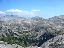 - en el norte y noreste por el río Lammer hasta el arroyo Rußbach, que desciende del puerto de Gschütt. Más allá del Lammer está el Grupo Osterhorn (Montañas Salzkammergut)