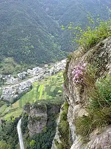 - cascada del Gran Estanque del Dragón (en chino simplificado, 大; pinyin, dà lóng qiū; literalmente, ‘Gran estanque del dragón’), que es la cascada más alta de China con una caída de 192 metros.[33][24]