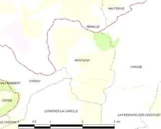 Montigny era una comuna francesa situada en el departamento de Sarthe, de la región de Países del Loira, que el 1 de enero de 2015 pasó a ser una comuna delegada de la comuna nueva de Villeneuve-en-Perseigne[3] al fusionarse con Chassé, La Fresnaye-sur-Chédouet, Lignières-la-Carelle, Roullée y Saint-Rigomer-des-Bois.