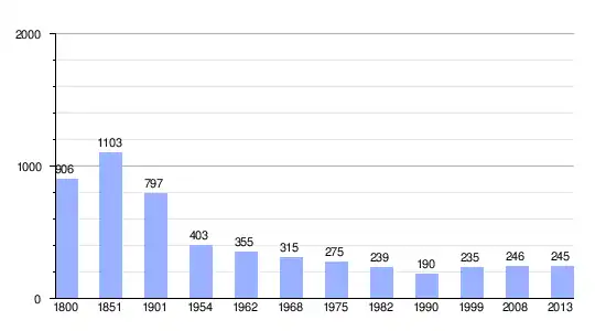 | Gráfica de evolución demográfica de Montlainsia entre 1800 y 2013 |