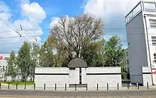 - En la parte posterior del Complejo de Escuelas Secundarias y Económicas no 1, se ha conservado un fragmento del muro del gueto, que fue el límite de Umschlagplatz.[11][12] En 2014, fue demolido y reconstruido después de la limpieza de los ladrillos.[13][14]