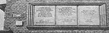 En la pared posterior del monumento se grabaron la inscripción que proviene de la placa conmemorativa y los nombres de sus creadores y fundadores.[4]