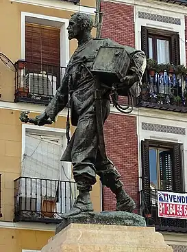 Se inauguró en su ubicación original en la Plaza de Cascorro —conocida entonces como Plaza del Rastro— el 5 de junio de 1902,[8] coincidiendo con la inauguración de una serie de esculturas al aire libre en Madrid con motivo de las celebraciones por la llegada de época del rey Alfonso XIII (retrasada varias veces por el mal tiempo),[8] protagonizadas por figuras destacadas como Bravo Murillo, Agustín Argüelles, Lope de Vega, Francisco de Quevedo y Goya.[6][9]