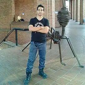 ![]() Imagen del químico Cesar Valencia al lado del Monumento a la Hormiga | ||