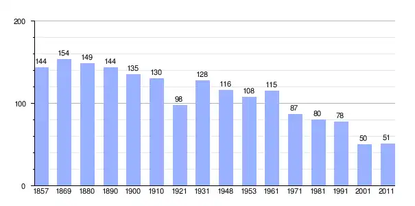 | Gráfica de población de Moravička Sela 1857-2011 |