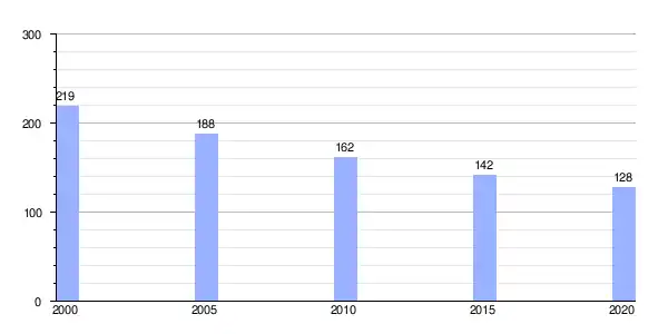 | Gráfica de evolución demográfica de Moreda entre 2000 y 2020 |