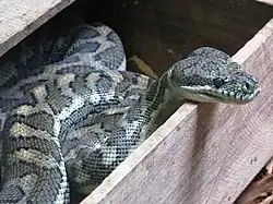 | Morelia spilota harrisoni[11] | Hoser, 2000 | Irian Jaya o Pitón de alfombra papuana | Nueva Guinea (Nueva Guinea Occidental y Papúa Nueva Guinea). |