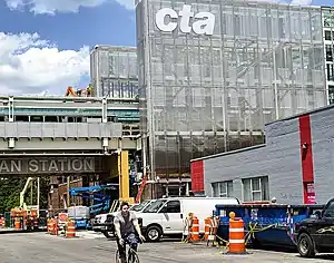 - «Nueva estación del Metro de Chicago en la Calle Morgan». Chicago Tribune (en inglés). Archivado desde el original el 3 de octubre de 2009. Consultado el 30 de marzo de 2012.