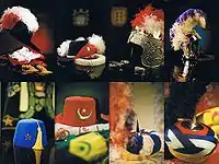 - Capitán, eepresentado por un varón, ataviado con el traje oficial de cada comparsa que porta la bandera de la comparsa o una espada.
