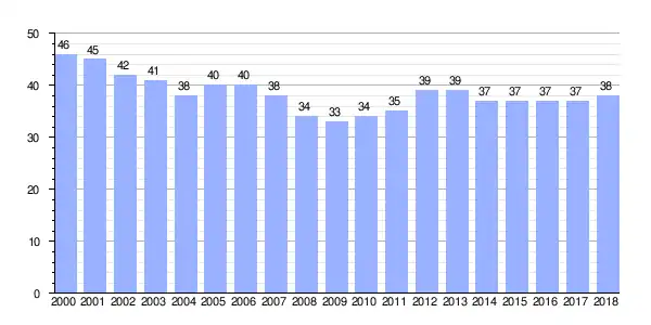 | Gráfica de evolución demográfica de Mosquete entre 2000 y 2018 |
