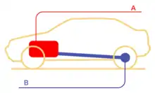 - Delantero: el centro de masas del motor se coloca entre el eje de las ruedas delanteras y el parachoques, de modo que le confiera características dinámicas simétricas a las de un motor trasero.
