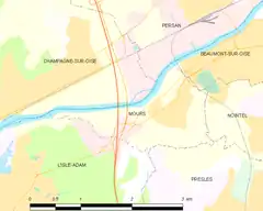 Mours es una población y comuna francesa, en la región de Isla de Francia, departamento de Valle del Oise, en el distrito de Pontoise y cantón de Beaumont-sur-Oise.