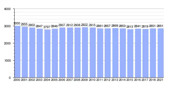 | Gráfica de evolución demográfica de Mugardos[2] entre 2000 y 2021 |