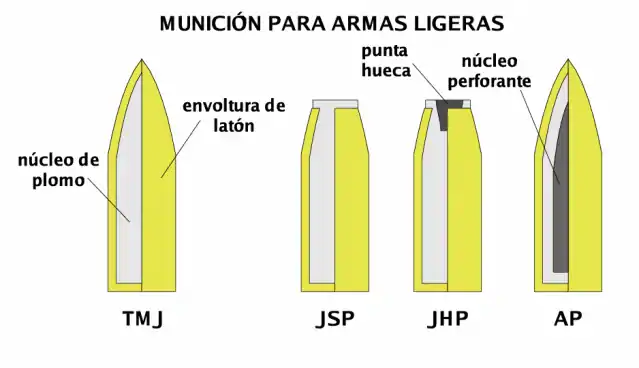 Lo siguiente a tener en cuenta es la estructura física de la bala. Teóricamente, solo son aptas para el combate militar balas totalmente envueltas en una envoltura metálica dura de latón y rellenas de plomo o alguna aleación del mismo. Este tipo de munición, muy extendida, se conoce genéricamente por FMJ (full metal jacket) y tiende a atravesar totalmente el cuerpo. En la práctica tanto en la guerra como por parte de cuerpos policiales y particulares se emplean también municiones modificadas. En muchos países, parte de estas municiones son sólo legales para arma corta o caza con ciertos rifles de gran calibre y baja velocidad, ya que a velocidad subsónica no pueden provocar los destrozos que ocasionarían a supersónica y permiten aumentar lo que se llama el poder de parada de un arma, esto es, su capacidad de detener a un individuo o a una especie peligrosa en caso de caza.
