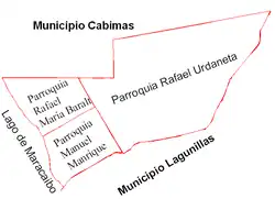 Su límite con el municipio Cabimas es la carretera Punta Gorda - La Plata.
