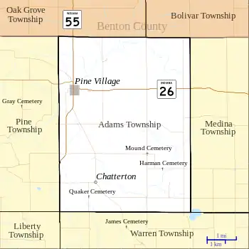 El municipio de Adams (en inglés: Adams Township) es un municipio ubicado en el condado de Warren en el estado estadounidense de Indiana. En el año 2010 tenía una población de 512 habitantes y una densidad poblacional de 7,33 personas por km².[2]