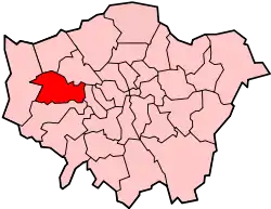 El municipio limita con Hillingdon al oeste, Harrow y Brent al norte, Hammersmith y Fulham al este y Hounslow al sur.