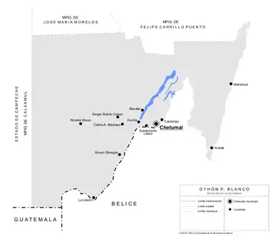 El 2 de febrero de 2011 el Congreso de Quintana Roo segregó del territorio del Othón P. Blanco el municipio de Bacalar, por lo que todos los datos de este artículo son anteriores a dicho cambio y por tanto se encuentran desactualizados.[5]