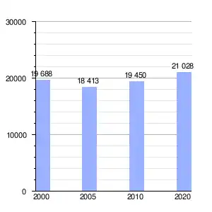 Cuenta con 21 028 habitantes[7], lo que representa un crecimiento promedio de 0.80% anual en el período 2010-2020 sobre la base de los 19 450 habitantes registrados en el censo anterior. Ocupa una superficie de 170.4 km², lo que determina al año 2020 una densidad de 123,4 hab/km².[8]