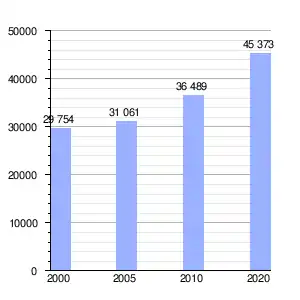 De acuerdo a los resultados del Censo de Población y Vivienda de 2020 realizado por el Instituto Nacional de Estadística y Geografía, la población total del municipio es de 45 373 habitantes, lo que representa un crecimiento promedio de 2.3% anual en el período 2010-2020 sobre la base de los 36 489 habitantes registrados en el censo anterior. Al año 2020 la densidad del municipio era de 233,1 hab/km².[10]