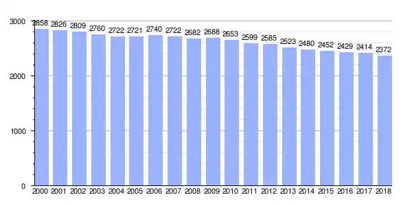 | Gráfica de evolución demográfica de Muros entre 2000 y 2018 |