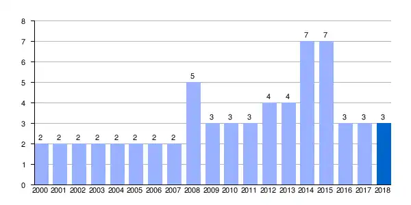| Gráfica de evolución demográfica de Muruzábal de Andión[1] entre 2000 y 2018 |