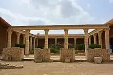 Esta reconstrucción se ha realizado gracias al Instituto Nacional del Patrimonio, sobre todo bajo la dirección de Hédi Slim, conservador del sitio, y de Jean-Claude Golvin, director de investigación al CNRS.[7]