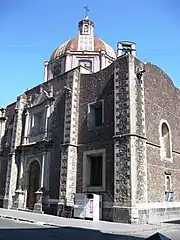 La entrada de la iglesia se encuentra en la Calle de Moneda Número 26, al noreste de la plaza principal de la Ciudad de México. Esta iglesia es considerada como una mezcla de estilos entre barroco mexicano y Neoclásico. La iglesia fue completamente terminada en 1770.[5] y fue obra del arquitecto Francisco Guerrero y Torres.[6] La iglesia tiene dos portales, uno dedicado a Santa Inés y el otro al Apóstol Santiago el Mayor.[4] Su cúpula está decorada con azulejos fijados en un diseño de la tira y hechos para parecer rebozos, un tipo de chal indígena.[5] En el interior, el altar barroco original fue reemplazado por el actual altar Neoclásico.[4] Los pintores mexicanos Miguel Cabrera y José de Ibarra están en el altar.[1]