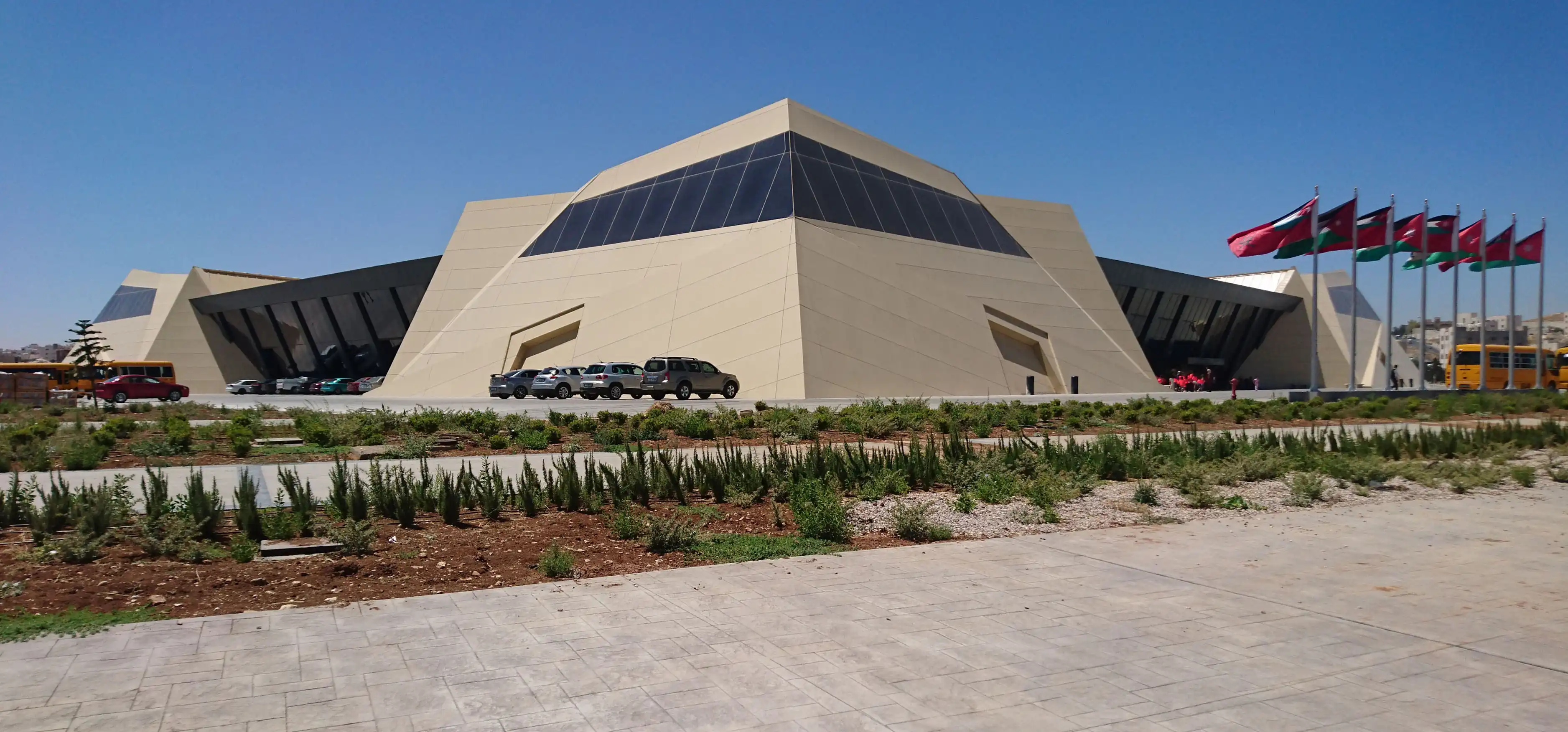 El edificio abarca aproximadamente 20,000 metros cuadrados, lo que lo convierte en el museo más grande de Jordania. Tiene alrededor de 110 tanques y construcción blindada jordana, clasificados árabes y occidentales y expuestos en orden cronológico por fecha, una gran parte es de fabricación estadounidense, británica, Soviética y alemana, también cuenta con una sala dedicada a las industrias militares locales. El museo incluye equipos originales y algunas piezas raras y restauradas que narran la evolución de estos vehículos militares desde 1915, diseñados por el arquitecto jordano Zaid Daoud.[4]