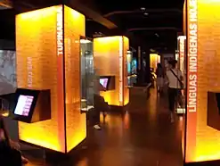 - El guionista Marcello Macca, bajo coordinación de Isa G. Ferraz, desarrolló los contenidos de las pantallas multimedia sobre la base de textos pertenecientes a Ataliba Teixeira de Castilho, Aryon Dall'Igna Rodrigues, Yeda Pessoa de Castro, Alberto da Costa e Silva, Ivo Castro, Carlos Alberto Ricardo, Marilza Oliveira, Ana Suely Cabral, Ieda Alves, Mirta Groppi, Oswaldo Truzzi y Mario Eduardo Viaro.