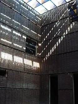 El edificio actual ha sido proyectado por Mariano Díez Sáenz de Miera, aprovechando los restos del Convento de San Agustín que permanecían en pie: una fachada de tapial de la antigua iglesia con fachada renacentista de clípeos y los escudos de los Almirantes de Castilla fundadores del convento, así como la capilla mortuoria de los señores de Viñafañe de estilo tardogótico y renacentista, y los suelos de canto cuarcítico (enchinarrados) con decoraciones simbólicas, geométricas y vegetales.
