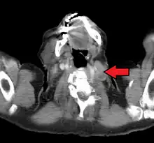 El nódulo de Virchow, visto en una tomografía computarizada.