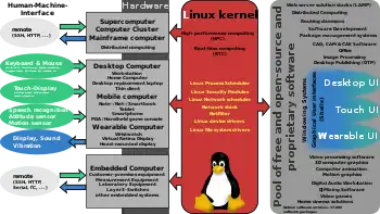 Linux se despliega en una amplia variedad de sistemas informáticos, como sistemas embebidos, dispositivos móviles (incluido su uso en el sistema operativo Android), computadoras personales, servidores, mainframes y supercomputadoras[3][4].