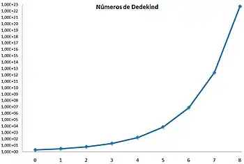 En combinatoria, los números de Dedekind son una sucesión entera de rápido crecimiento cuyo nombre se dio póstumamente en honor a Richard Dedekind, quien las definió por primera vez en 1897.[1] El número de Dedekind M(n) corresponde, equivalentemente, a lo siguiente: