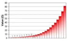 donde b es el valor de la serie seleccionada (por ejemplo b = 40 para la serie R40), e i es el i-ésimo elemento de esta serie (donde i = 0 para el inicio).