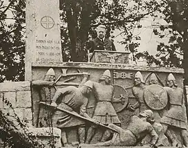 El monumento fue creado por el escultor Wilhelm Rasmussen (1879-1965) y fue diseñado con un obelisco en el centro, rodeado por una escalera que consta de 39 pasos. La instalación lleva el logotipo de la cruz solar de la Nasjonal Samling (NS), un organización nazi, con imágenes de escenas de la batalla de Stiklestad en estilo vikingo nacionalista y estrofas del poema de Per Sivle dedicado a Tord Foleson, portaestandarte real.
