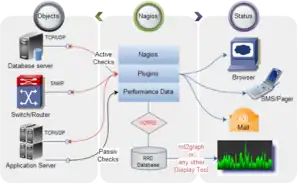 - Diseño simple de plugins, que permiten a los usuarios desarrollar sus propios chequeos de servicios dependiendo de sus necesidades, usando sus herramientas preferidas (Bash, C++, Perl, Ruby, Python, PHP, C#...).