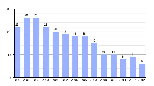 Población (2000-2015) según el nomenclátor de unidades poblacionales del INE.[2] |