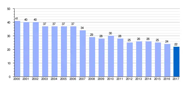 | Gráfica de evolución demográfica de Naharros de Valdunciel[4] entre 2000 y 2017 |