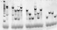 La estructura totalmente ensamblada y completa puede ser verificada usando un gel de electroforesis para estado nativo, el cual proporciona información de tamaño y figura para complejos de ácidos nucléicos. También, un ensayo de cambio en la corrida electroforética puede proporcionar información de si la estructura deseada incorpora todas las cadenas necesarias.[77]