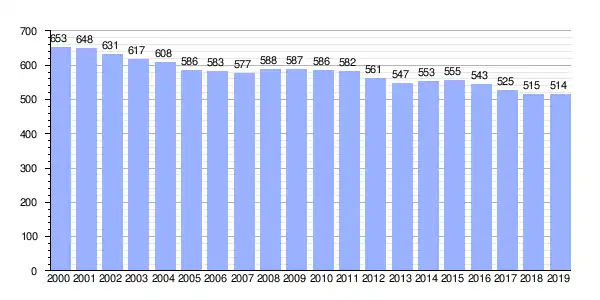| Gráfica de evolución demográfica de Narahío entre 2000 y 2019 |