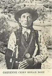 - Fredriksen, John C. (1 de enero de 2001). America's Military Adversaries: From Colonial Times to the Present. ABC-CLIO. p. 432. ISBN 978-1-57607-603-3. «Maduró hasta convertirse en un hombre de complexión fuerte, alto, musculoso, con un perfil aguileño que dio lugar al nombre Woquni, o "Nariz de gancho". Los blancos tradujeron esto en el apodo más familiar de Nariz Romana. En su primera juventud, Nariz Romana ...»