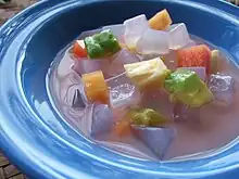 Nata de coco es una especie de postre gelatinoso y translúcido típico de la cocina filipina.[1] Este postre es muy típico en las provincias de La Laguna y Quezon. Se trata de un alimento fermentado por la acción de una bacteria (Leuconostoc mesenteroides) que se alimenta de los disacáridos existentes en ciertas frutas: principalmente coco en conjunción con carragenano. La denominación de este postre es literalmente como suena en castellano.