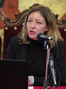 ![]() Natalia Peiro en la Asamblea-Jornada Diocesana, organizada en Villagarcia de Campos, Valladolid (5 de mayo de 2018) | ||